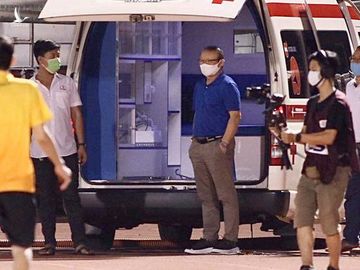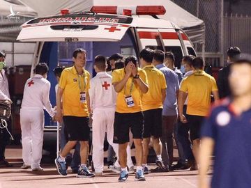 Các nhân viên y tế vào sân và mất gần 10 phút sơ cứu. Tiền vệ Hùng Dũng được nẹp kỹ chân phải và lên xe cấp cứu đến thẳng bệnh viện. Chứng kiến cậu học trò dính chấn thương nặng, HLV Park Hang Seo từ khán đài xuống tận xe cứu thương để theo dõi tình hình.