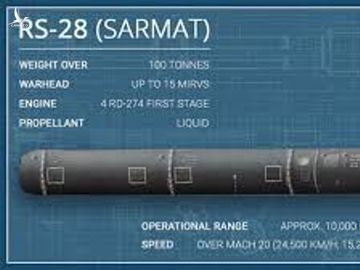 Truyền thông của Anh vừa có bài viết về loại tên lửa mang đầu đạn hạt nhân mới nhất của Nga có tên là Sarmat; với sức công phá kinh hoàng, đủ để phá hủy một vùng lãnh thổ có diện tích bằng cả nước Pháp.