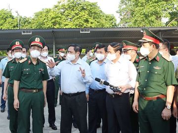 Ngay sau buổi làm việc với lãnh đạo tỉnh, Thủ tướng Phạm Minh Chính đã đến thăm, động viên cán bộ, chiến sĩ và các lực lượng đang làm nhiệm vụ tại Trung đoàn 831 (Bộ CHQS tỉnh). Thủ tướng Chính phủ chia sẻ khó khăn, động viên cán bộ, chiến sĩ, lực lượng y, bác sĩ tại đây với tinh thần thần tốc, quyết liệt hơn nữa, đẩy nhanh tiến độ xét nghiệm.