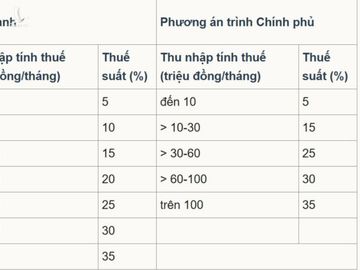 Bộ Tài chính vừa trình Chính phủ dự thảo Luật Thuế thu nhập cá nhân (TNCN) sửa đổi, trong đó đáng chú ý là phương án rút gọn biểu thuế lũy tiến từng phần từ 7 bậc xuống còn 5 bậc. Theo đó, mức thuế suất tối thiểu là 5% cho thu nhập tính thuế từ 10 triệu đồng/tháng, trong khi mức cao nhất 35% chỉ áp dụng cho thu nhập trên 100 triệu đồng/tháng (sau giảm trừ).